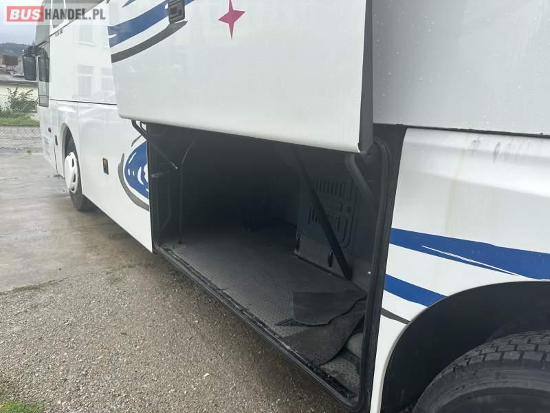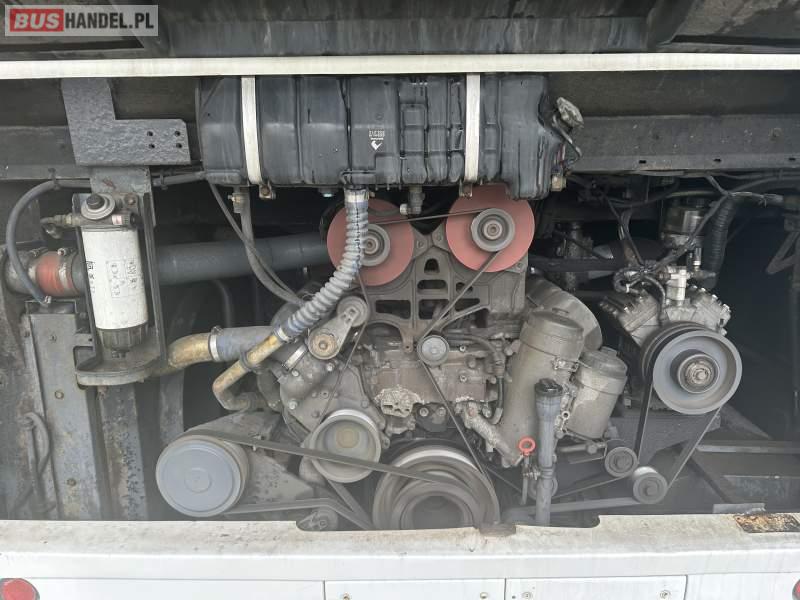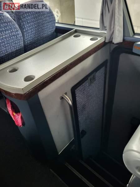 : WC, lodówka, kabina sypialna, siateczki, ABS, ASR, tempomat, retarder, CD, podnóżki, stoliczki, mikrofon, klimatyzacja, regulacja wysokości nadwozia, centralny zamek, elektryczne lusterka, fotele odchylane i rozsuwane, DVD, hak holowniczy, ESP