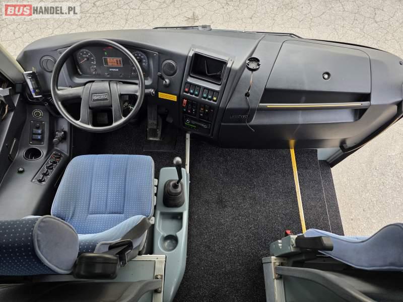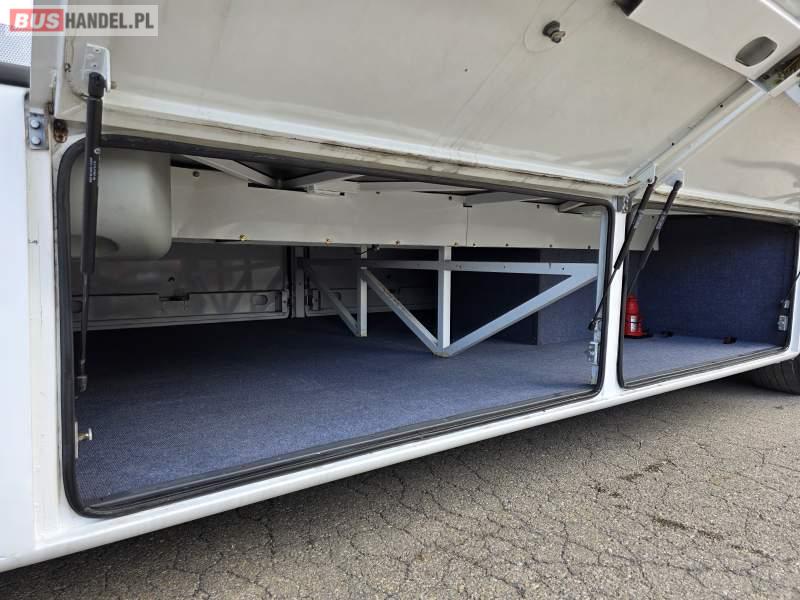: klimatyzacja, lodówka, oświetlenie indywidualne, nawiewy dyszowe, fotele nieodchylane, podnóżki, stoliczki, siateczki, ABS, ASR, tempomat, retarder, mikrofon, radio, regulacja wysokości nadwozia, centralny zamek, podwójne szyby boczne, wspomaganie kierownicy, elektryczne lusterka, ogrzewanie stacjonarne