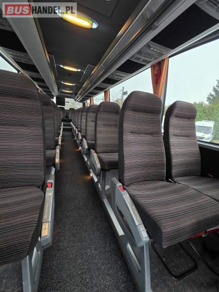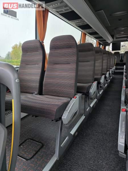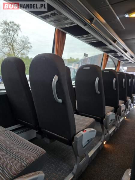: klimatyzacja, lodówka, oświetlenie indywidualne, nawiewy dyszowe, fotele odchylane, podnóżki, stoliczki, siateczki, ABS, ASR, tempomat, retarder, mikrofon, sejf, regulacja wysokości nadwozia, centralny zamek, podwójne szyby boczne, wspomaganie kierownicy, elektryczne lusterka, ogrzewanie stacjonarne, DVD