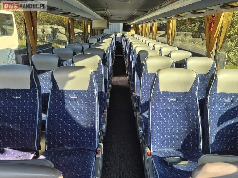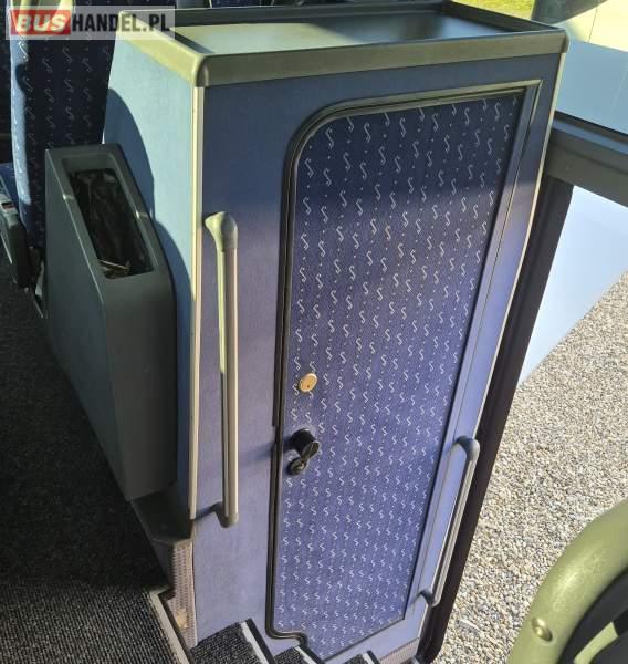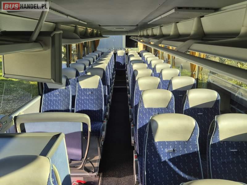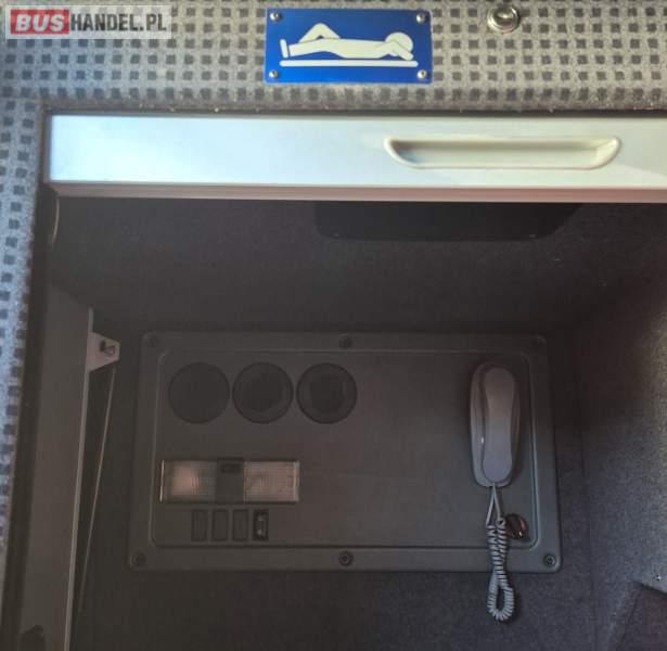 : WC, lodówka, caffebar, kabina sypialna, fotele odchylane, oświetlenie indywidualne, nawiewy dyszowe, siateczki, ABS, ASR, tempomat, retarder, telefon, nawigacja, CD, podnóżki, mikrofon, klimatyzacja, radio, regulacja wysokości nadwozia, podwójne szyby boczne, wspomaganie kierownicy, elektryczne lusterka, DVD, ogrzewanie stacjonarne, ESP