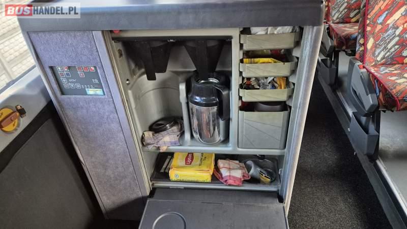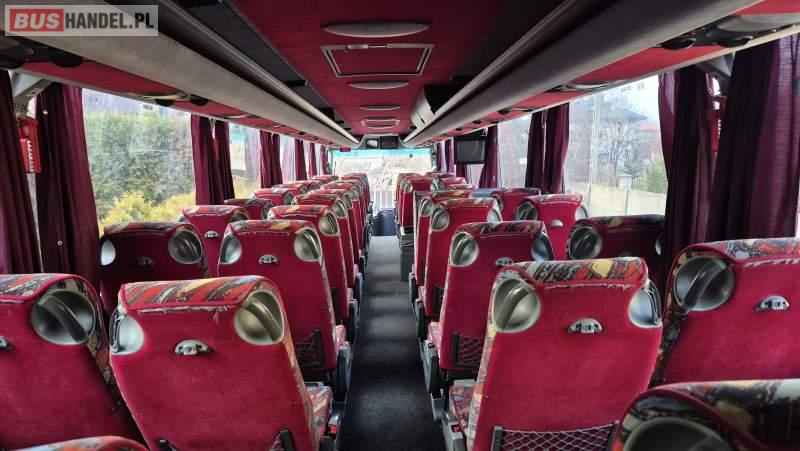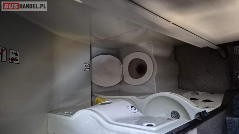 : WC, lodówka, oświetlenie indywidualne, nawiewy dyszowe, siateczki, ABS, tempomat, retarder, stoliczki, mikrofon, radio, regulacja wysokości nadwozia, podwójne szyby boczne, wspomaganie kierownicy
