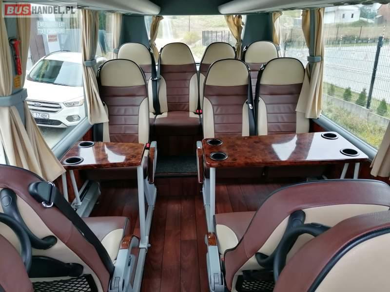 : video, lodówka, fotele odchylane, oświetlenie indywidualne, nawiewy dyszowe, siateczki, ABS, ASR, tempomat, retarder, CD, podnóżki, stoliczki, mikrofon, klimatyzacja, radio, centralny zamek, podwójne szyby boczne, wspomaganie kierownicy, elektryczne lusterka, fotele odchylane i rozsuwane, DVD, ogrzewanie stacjonarne, hak holowniczy, ESP