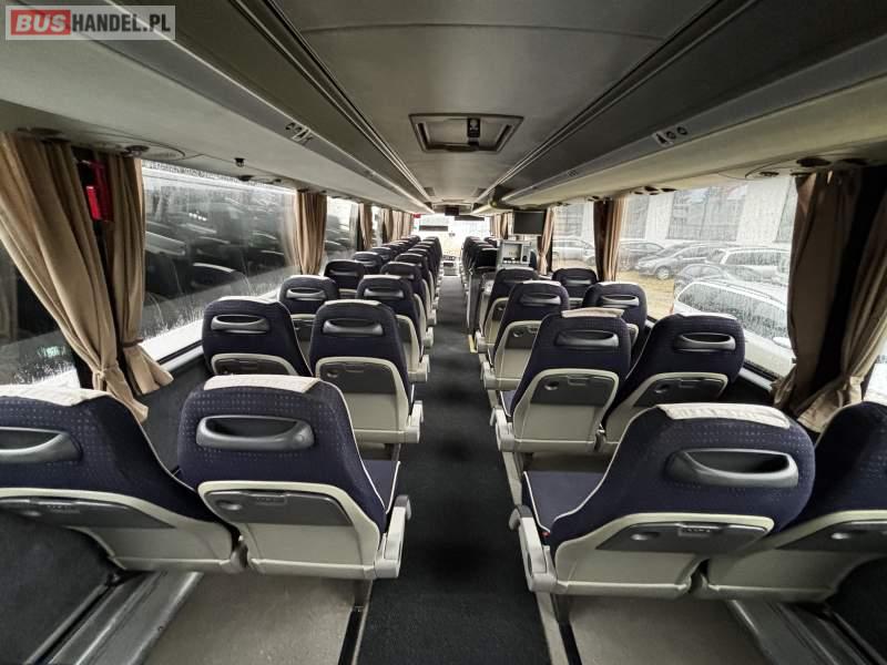 : video, WC, lodówka, caffebar, kabina sypialna, fotele odchylane, ABS, ASR, tempomat, retarder, CD, stoliczki, mikrofon, klimatyzacja, radio, regulacja wysokości nadwozia, wspomaganie kierownicy, fotele odchylane i rozsuwane, DVD, ESP