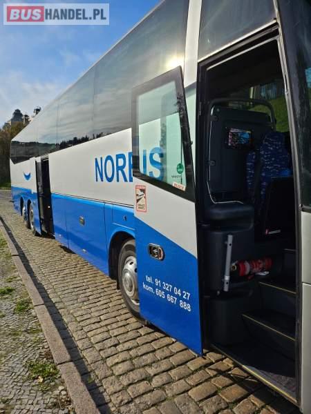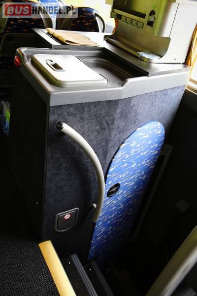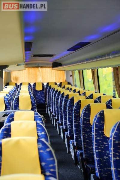 : WC, lodówka, caffebar, kabina sypialna, fotele odchylane, oświetlenie indywidualne, nawiewy dyszowe, siateczki, ABS, ASR, tempomat, retarder, CD, podnóżki, stoliczki, mikrofon, klimatyzacja, radio, regulacja wysokości nadwozia, centralny zamek, podwójne szyby boczne, wspomaganie kierownicy, elektryczne lusterka, fotele odchylane i rozsuwane, DVD, ogrzewanie stacjonarne, ESP