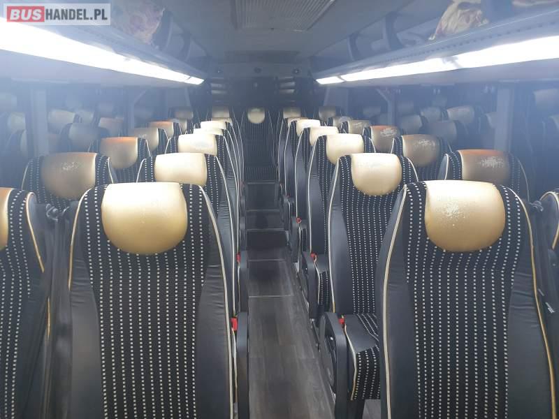 : video, lodówka, caffebar, fotele odchylane, oświetlenie indywidualne, nawiewy dyszowe, siateczki, ABS, ASR, retarder, CD, mikrofon, klimatyzacja, radio, podwójne szyby boczne, wspomaganie kierownicy, DVD, ogrzewanie stacjonarne, ESP