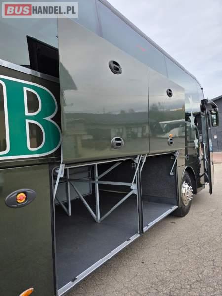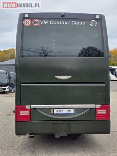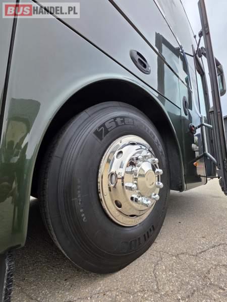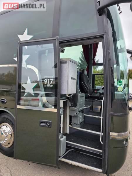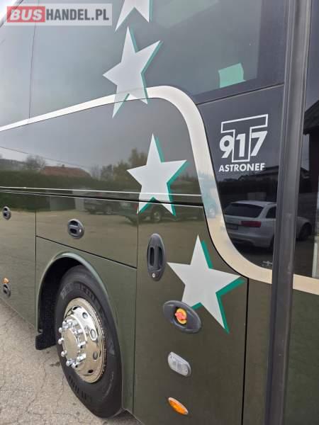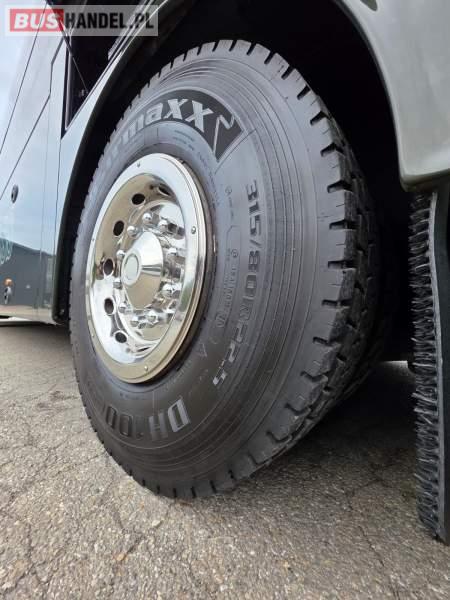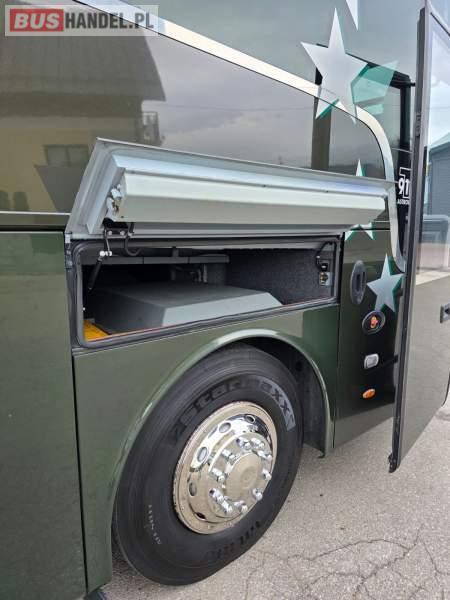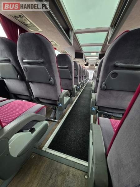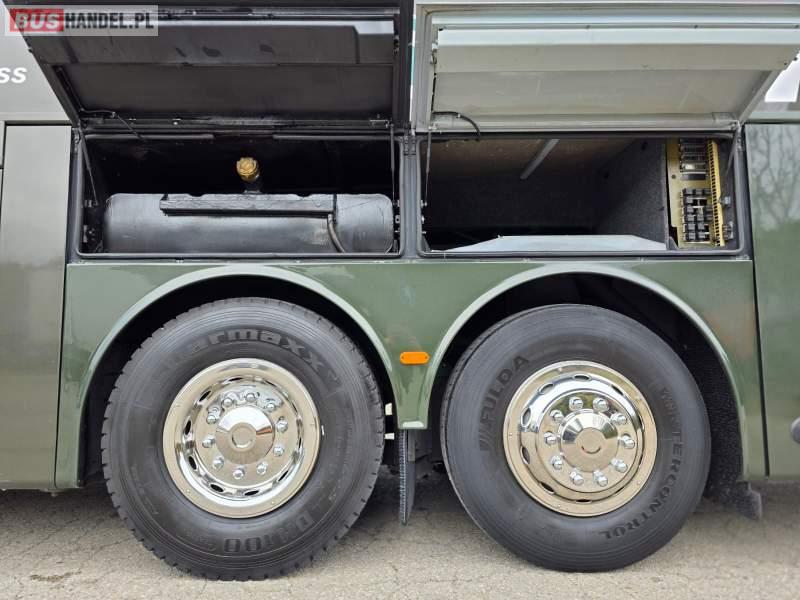 : WC, lodówka, caffebar, kabina sypialna, fotele odchylane, oświetlenie indywidualne, nawiewy dyszowe, ABS, ASR, tempomat, retarder, CD, podnóżki, stoliczki, mikrofon, klimatyzacja, radio, regulacja wysokości nadwozia, centralny zamek, podwójne szyby boczne, wspomaganie kierownicy, elektryczne lusterka, DVD, ogrzewanie stacjonarne