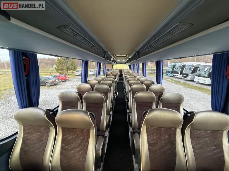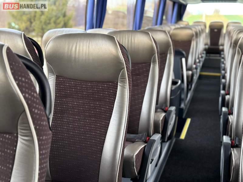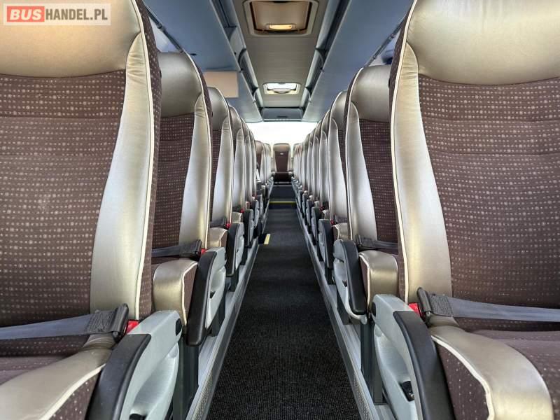 : video, WC, lodówka, kabina sypialna, oświetlenie indywidualne, nawiewy dyszowe, siateczki, ABS, ASR, tempomat, retarder, CD, podnóżki, stoliczki, mikrofon, klimatyzacja, radio, regulacja wysokości nadwozia, centralny zamek, podwójne szyby boczne, wspomaganie kierownicy, elektryczne lusterka, aluminiowe felgi, fotele odchylane i rozsuwane, DVD, ogrzewanie stacjonarne, ESP