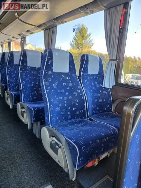 : WC, lodówka, fotele odchylane, oświetlenie indywidualne, nawiewy dyszowe, siateczki, ABS, ASR, tempomat, retarder, podnóżki, stoliczki, mikrofon, klimatyzacja, radio, sejf, regulacja wysokości nadwozia, centralny zamek, podwójne szyby boczne, wspomaganie kierownicy, elektryczne lusterka, ogrzewanie stacjonarne