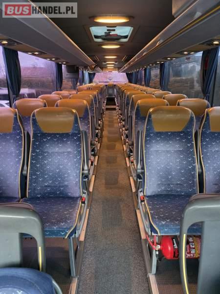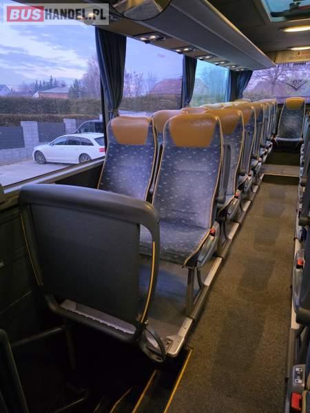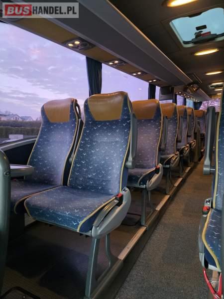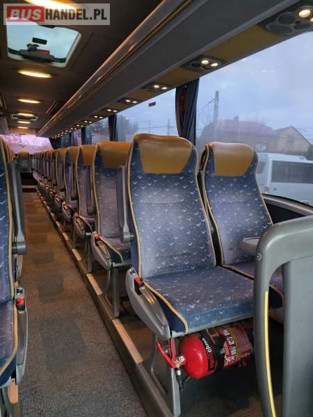 : WC, lodówka, caffebar, kabina sypialna, fotele odchylane, oświetlenie indywidualne, nawiewy dyszowe, ABS, ASR, retarder, podnóżki, mikrofon, klimatyzacja, radio, sejf, regulacja wysokości nadwozia, centralny zamek, podwójne szyby boczne, elektryczne lusterka, DVD, ogrzewanie stacjonarne, ESP