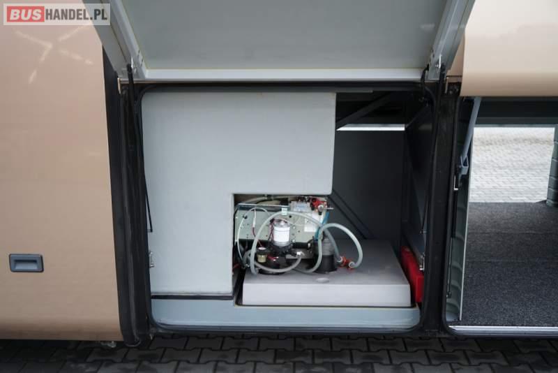 : WC, lodówka, fotele odchylane, ABS, tempomat, retarder, CD, mikrofon, klimatyzacja, radio, DVD