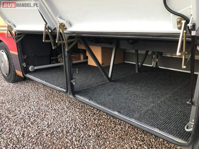 : video, WC, lodówka, caffebar, fotele odchylane, oświetlenie indywidualne, ABS, ASR, tempomat, retarder, CD, podnóżki, mikrofon, klimatyzacja, radio, centralny zamek, podwójne szyby boczne, wspomaganie kierownicy, elektryczne lusterka, DVD, ogrzewanie stacjonarne, hak holowniczy, ESP