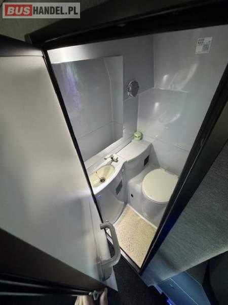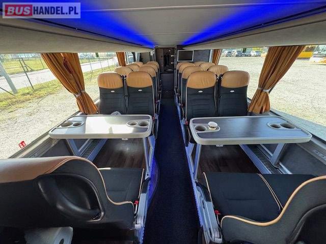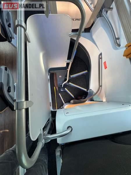 : video, WC, caffebar, oświetlenie indywidualne, siateczki, ABS, ASR, tempomat, retarder, telefon, podnóżki, stoliczki, radio, regulacja wysokości nadwozia, centralny zamek, podwójne szyby boczne, wspomaganie kierownicy, fotele odchylane i rozsuwane, DVD, ogrzewanie stacjonarne, ESP