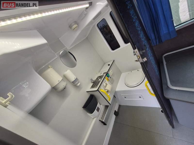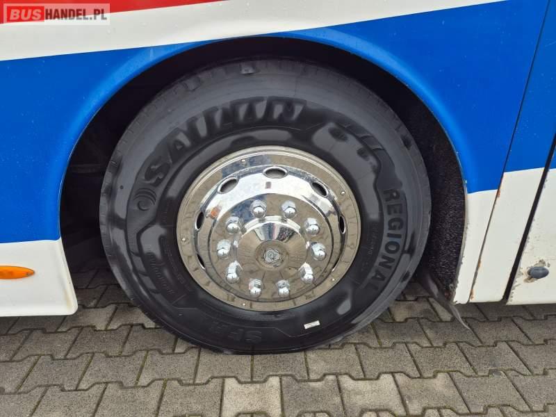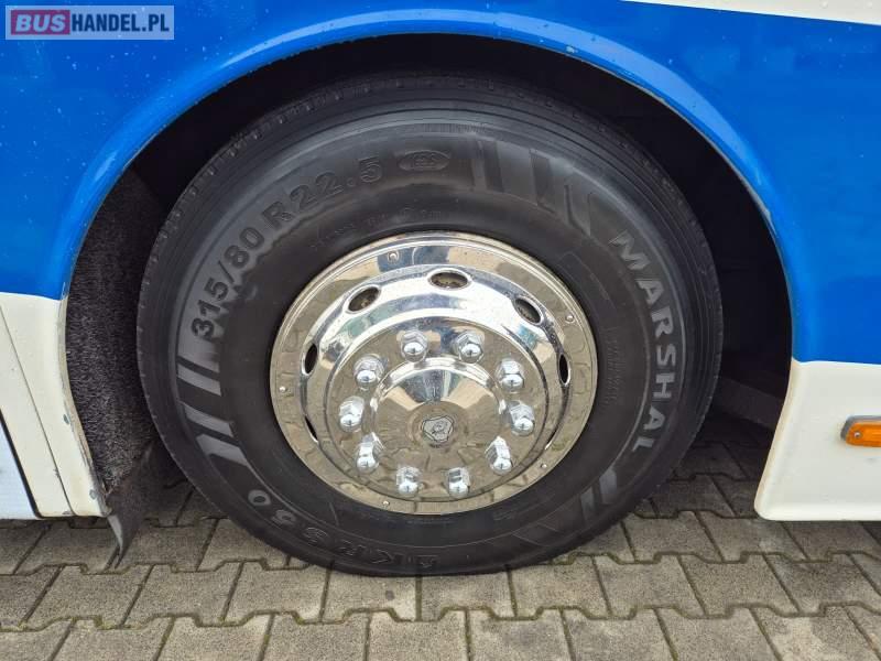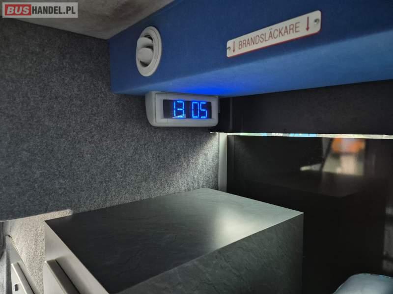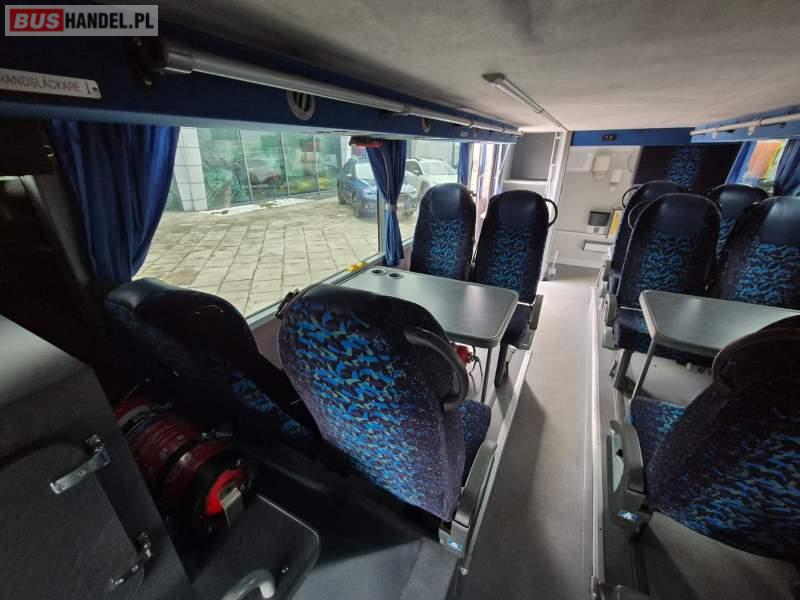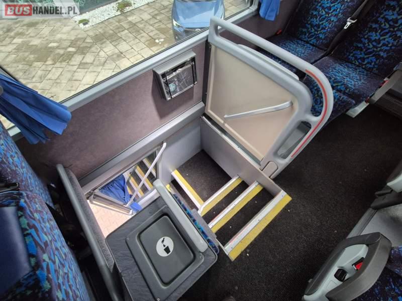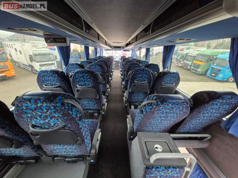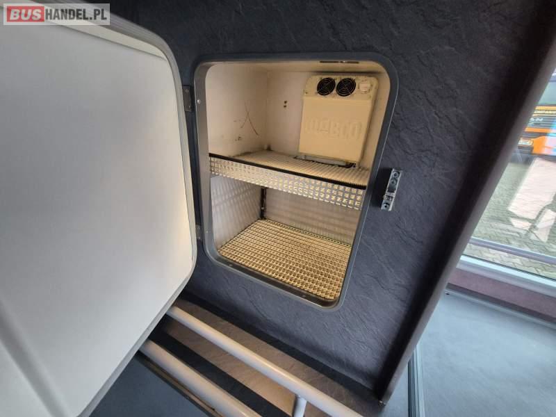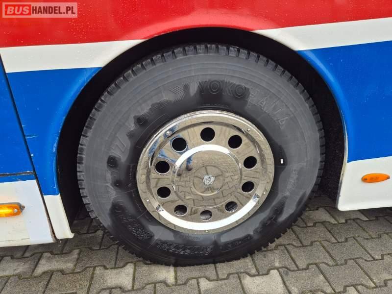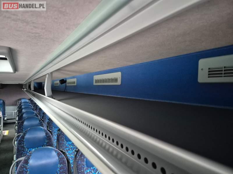 : video, WC, lodówka, caffebar, ABS, ASR, tempomat, retarder, stoliczki, mikrofon, klimatyzacja, radio, kuchenka mikrofalowa, wyświetlacz matrix, regulacja wysokości nadwozia, centralny zamek, podwójne szyby boczne, wspomaganie kierownicy, elektryczne lusterka, DVD, ESP