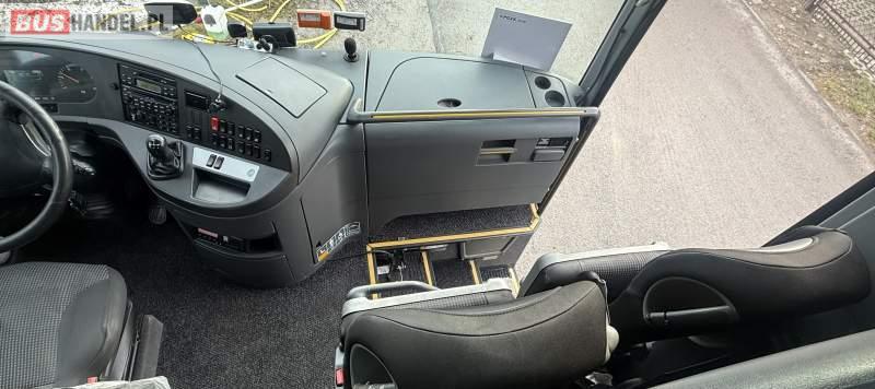 : klimatyzacja, video, WC, lodówka, caffebar, kabina sypialna, oświetlenie indywidualne, nawiewy dyszowe, podnóżki, stoliczki, siateczki, ABS, ASR, tempomat, retarder, telefon, nawigacja, CD, mikrofon, radio, fotele odchylane i rozsuwane, sejf, regulacja wysokości nadwozia, centralny zamek, podwójne szyby boczne, wspomaganie kierownicy, elektryczne lusterka, ogrzewanie stacjonarne, DVD, ESP