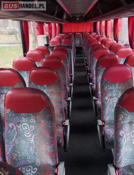 : WC, lodówka, kabina sypialna, fotele odchylane, oświetlenie indywidualne, nawiewy dyszowe, siateczki, ABS, ASR, tempomat, retarder, CD, stoliczki, mikrofon, klimatyzacja, radio, regulacja wysokości nadwozia, podwójne szyby boczne, wspomaganie kierownicy, elektryczne lusterka, DVD, ogrzewanie stacjonarne