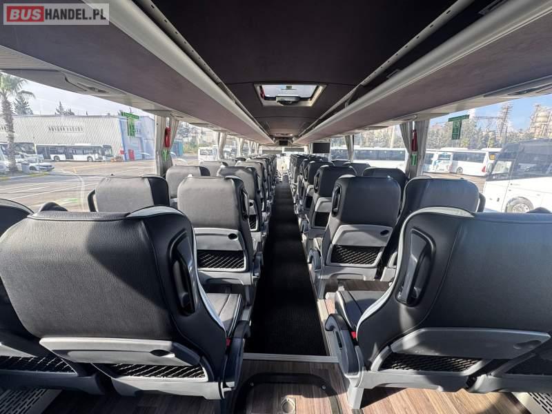 : klimatyzacja, video, WC, lodówka, kabina sypialna, oświetlenie indywidualne, nawiewy dyszowe, podnóżki, stoliczki, siateczki, ABS, ASR, tempomat, retarder, telefon, CD, mikrofon, radio, fotele odchylane i rozsuwane, kuchenka mikrofalowa, regulacja wysokości nadwozia, centralny zamek, podwójne szyby boczne, wspomaganie kierownicy, aluminiowe felgi, elektryczne lusterka, ogrzewanie stacjonarne, DVD, ESP