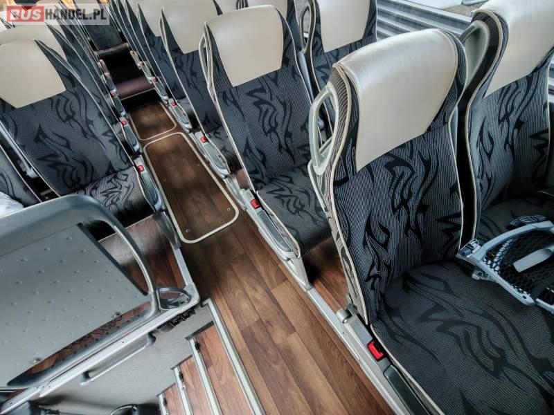 : video, WC, lodówka, caffebar, oświetlenie indywidualne, nawiewy dyszowe, siateczki, ABS, tempomat, retarder, telefon, nawigacja, CD, podnóżki, stoliczki, mikrofon, klimatyzacja, radio, rampa dla inwalidów, sejf, regulacja wysokości nadwozia, centralny zamek, podwójne szyby boczne, wspomaganie kierownicy, elektryczne lusterka, aluminiowe felgi, fotele odchylane i rozsuwane, DVD, ogrzewanie stacjonarne, ESP
