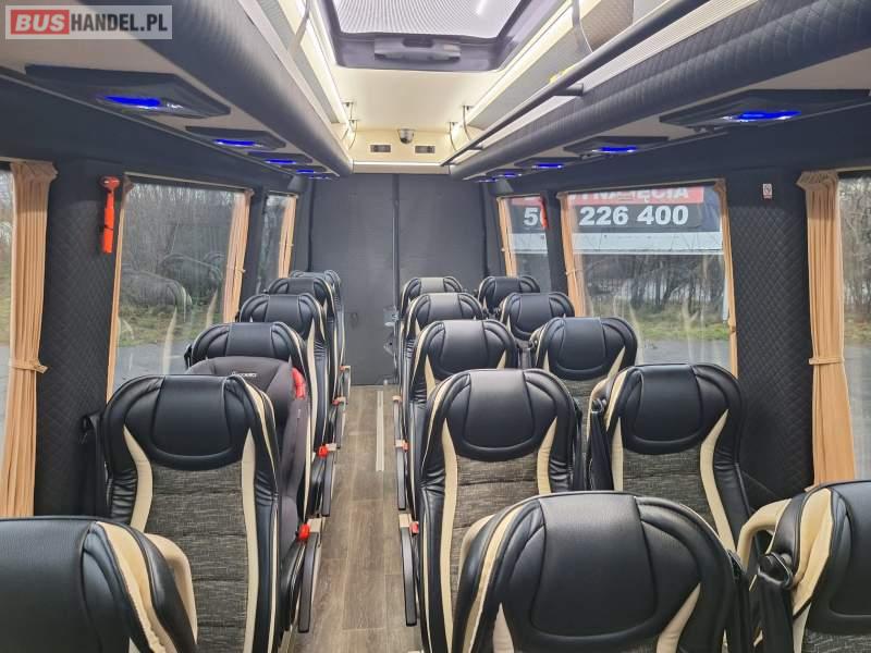 : video, fotele odchylane, oświetlenie indywidualne, nawiewy dyszowe, siateczki, ABS, ASR, tempomat, nawigacja, CD, podnóżki, stoliczki, mikrofon, klimatyzacja, radio, wyświetlacz matrix, rampa dla inwalidów, centralny zamek, podwójne szyby boczne, wspomaganie kierownicy, elektryczne lusterka, fotele odchylane i rozsuwane, DVD, ogrzewanie stacjonarne, ESP