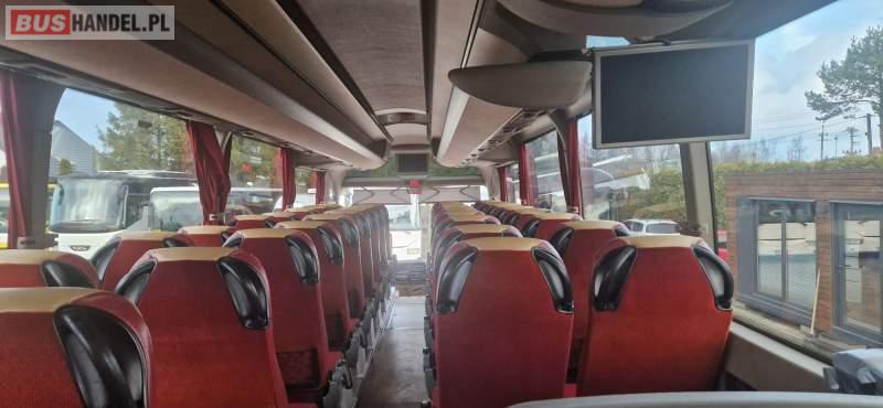 : video, lodówka, caffebar, fotele odchylane, oświetlenie indywidualne, siateczki, ABS, ASR, tempomat, retarder, CD, podnóżki, stoliczki, mikrofon, klimatyzacja, radio, regulacja wysokości nadwozia, centralny zamek, podwójne szyby boczne, wspomaganie kierownicy, elektryczne lusterka, aluminiowe felgi, DVD, ogrzewanie stacjonarne, ESP