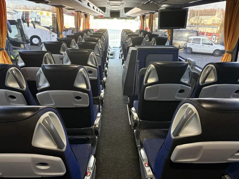: video, lodówka, tempomat, retarder, podnóżki, mikrofon, radio, fotele odchylane i rozsuwane, hak holowniczy
