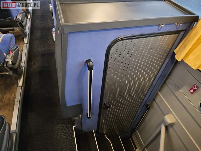 : WC, lodówka, oświetlenie indywidualne, nawiewy dyszowe, ABS, ASR, retarder, CD, podnóżki, mikrofon, klimatyzacja, radio, regulacja wysokości nadwozia, centralny zamek, podwójne szyby boczne, elektryczne lusterka, fotele odchylane i rozsuwane, DVD, ogrzewanie stacjonarne, ESP