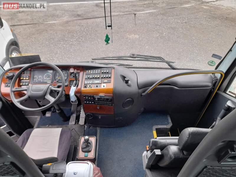 : klimatyzacja, WC, lodówka, caffebar, kabina sypialna, oświetlenie indywidualne, nawiewy dyszowe, fotele odchylane, podnóżki, stoliczki, siateczki, ABS, ASR, tempomat, retarder, CD, mikrofon, radio, fotele odchylane i rozsuwane, sejf, regulacja wysokości nadwozia, centralny zamek, podwójne szyby boczne, wspomaganie kierownicy, aluminiowe felgi, elektryczne lusterka, ogrzewanie stacjonarne