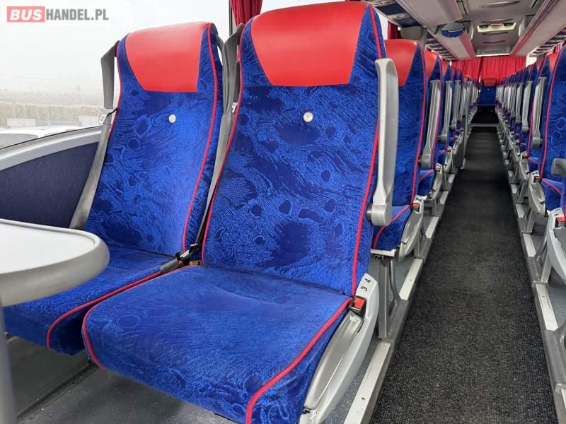 : WC, lodówka, oświetlenie indywidualne, nawiewy dyszowe, siateczki, ASR, tempomat, retarder, stoliczki, mikrofon, klimatyzacja, radio, sejf, regulacja wysokości nadwozia, centralny zamek, podwójne szyby boczne, wspomaganie kierownicy, elektryczne lusterka, fotele odchylane i rozsuwane, DVD, ogrzewanie stacjonarne