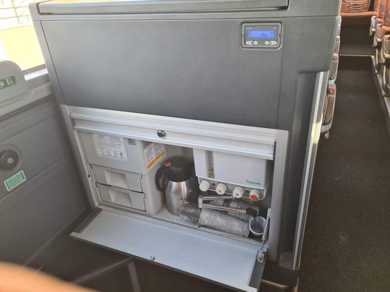 : WC, lodówka, caffebar, kabina sypialna, oświetlenie indywidualne, siateczki, ABS, ASR, tempomat, retarder, CD, podnóżki, stoliczki, mikrofon, klimatyzacja, radio, regulacja wysokości nadwozia, centralny zamek, podwójne szyby boczne, elektryczne lusterka, fotele odchylane i rozsuwane