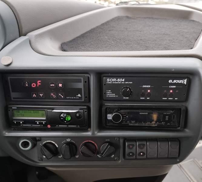 : oświetlenie indywidualne, nawiewy dyszowe, ABS, ASR, tempomat, retarder, fotele nieodchylane, mikrofon, klimatyzacja, radio, centralny zamek, podwójne szyby boczne, wspomaganie kierownicy, elektryczne lusterka, ogrzewanie stacjonarne, ESP