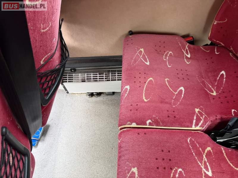 : fotele odchylane, oświetlenie indywidualne, nawiewy dyszowe, siateczki, ABS, ASR, tempomat, retarder, podnóżki, stoliczki, mikrofon, klimatyzacja, radio, regulacja wysokości nadwozia, centralny zamek, podwójne szyby boczne, wspomaganie kierownicy, elektryczne lusterka, ogrzewanie stacjonarne