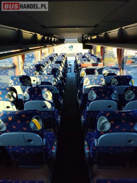 : klimatyzacja, WC, lodówka, oświetlenie indywidualne, nawiewy dyszowe, podnóżki, stoliczki, siateczki, ABS, ASR, tempomat, retarder, CD, mikrofon, radio, fotele odchylane i rozsuwane, regulacja wysokości nadwozia, podwójne szyby boczne, wspomaganie kierownicy, ogrzewanie stacjonarne, DVD, hak holowniczy, ESP