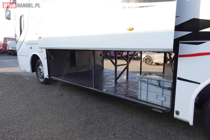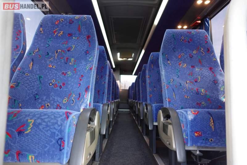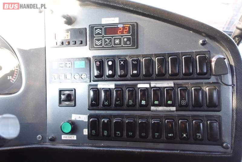 : video, WC, fotele odchylane, oświetlenie indywidualne, nawiewy dyszowe, siateczki, ABS, ASR, retarder, CD, podnóżki, stoliczki, klimatyzacja, regulacja wysokości nadwozia, centralny zamek, podwójne szyby boczne, wspomaganie kierownicy, elektryczne lusterka, fotele odchylane i rozsuwane, DVD, ogrzewanie stacjonarne, ESP