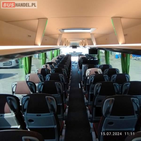Wyposażenie : WC, lodówka, caffebar, kabina sypialna, oświetlenie indywidualne, nawiewy dyszowe, siateczki, ABS, ASR, tempomat, retarder, CD, podnóżki, stoliczki, mikrofon, klimatyzacja, radio, regulacja wysokości nadwozia, centralny zamek, podwójne szyby boczne, wspomaganie kierownicy, elektryczne lusterka, aluminiowe felgi, fotele odchylane i rozsuwane, DVD, ogrzewanie stacjonarne, ESP