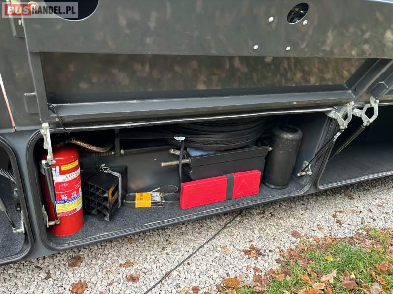 : lodówka, oświetlenie indywidualne, nawiewy dyszowe, siateczki, ABS, ASR, tempomat, retarder, CD, podnóżki, stoliczki, mikrofon, klimatyzacja, radio, podwójne szyby boczne, wspomaganie kierownicy, elektryczne lusterka, fotele odchylane i rozsuwane, ogrzewanie stacjonarne, hak holowniczy
