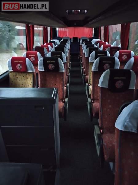 : klimatyzacja, video, WC, lodówka, caffebar, kabina sypialna, oświetlenie indywidualne, nawiewy dyszowe, podnóżki, stoliczki, siateczki, ABS, ASR, tempomat, retarder, CD, mikrofon, radio, fotele odchylane i rozsuwane, sejf, regulacja wysokości nadwozia, podwójne szyby boczne, wspomaganie kierownicy, elektryczne lusterka, ogrzewanie stacjonarne, DVD, ESP
