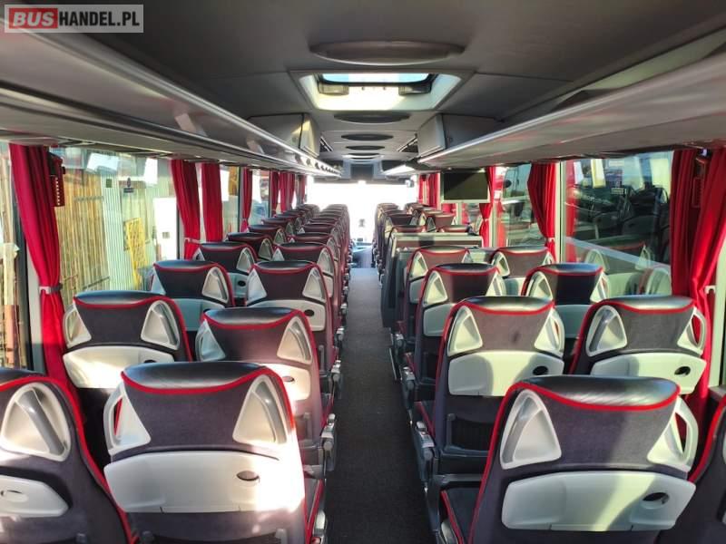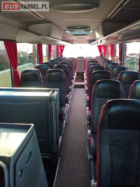 : klimatyzacja, video, WC, lodówka, caffebar, kabina sypialna, oświetlenie indywidualne, nawiewy dyszowe, fotele nieodchylane, podnóżki, stoliczki, siateczki, ABS, ASR, tempomat, retarder, nawigacja, CD, mikrofon, radio, fotele odchylane i rozsuwane, wyświetlacz matrix, regulacja wysokości nadwozia, centralny zamek, podwójne szyby boczne, wspomaganie kierownicy, DVD, ESP