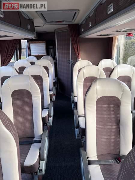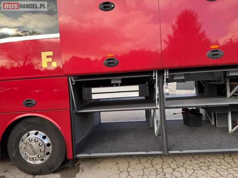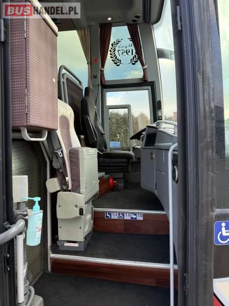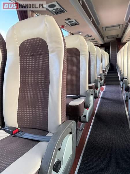 : klimatyzacja, WC, lodówka, kabina sypialna, oświetlenie indywidualne, nawiewy dyszowe, podnóżki, stoliczki, siateczki, ABS, ASR, tempomat, retarder, mikrofon, fotele odchylane i rozsuwane, rampa dla inwalidów, sejf, regulacja wysokości nadwozia, centralny zamek, podwójne szyby boczne, wspomaganie kierownicy, elektryczne lusterka, ogrzewanie stacjonarne, ESP