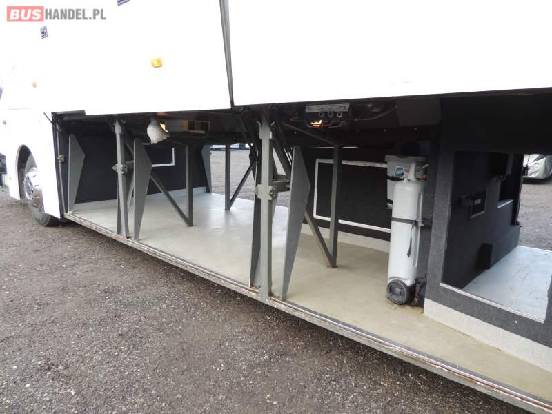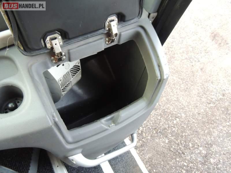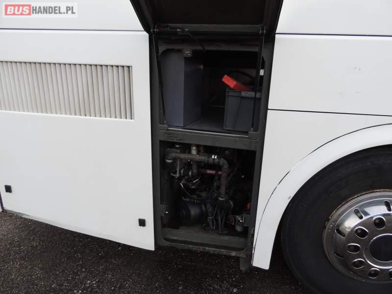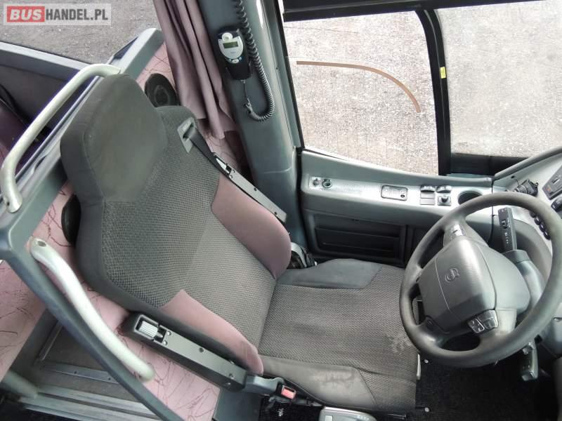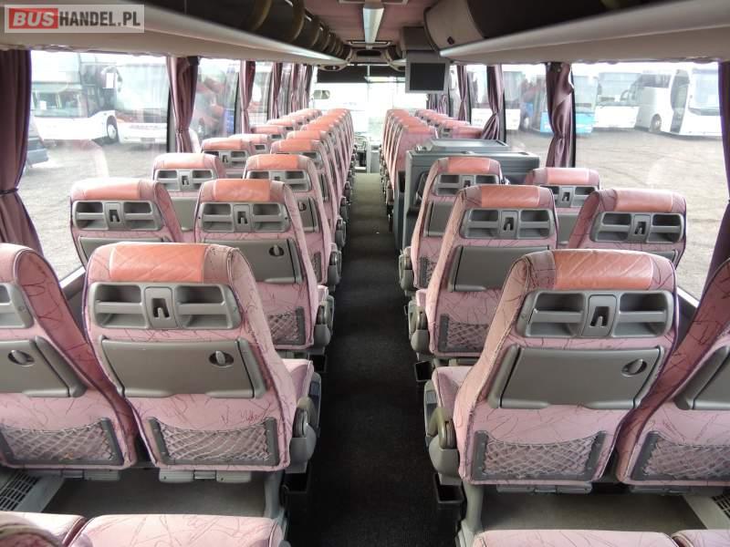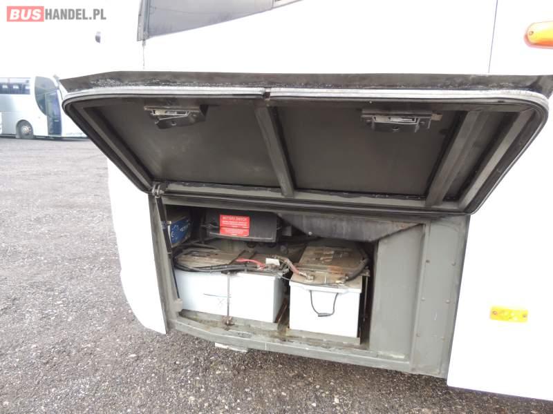 : video, WC, lodówka, caffebar, kabina sypialna, oświetlenie indywidualne, nawiewy dyszowe, siateczki, ABS, ASR, tempomat, retarder, CD, stoliczki, klimatyzacja, radio, regulacja wysokości nadwozia, centralny zamek, podwójne szyby boczne, wspomaganie kierownicy, fotele odchylane i rozsuwane, DVD, ogrzewanie stacjonarne