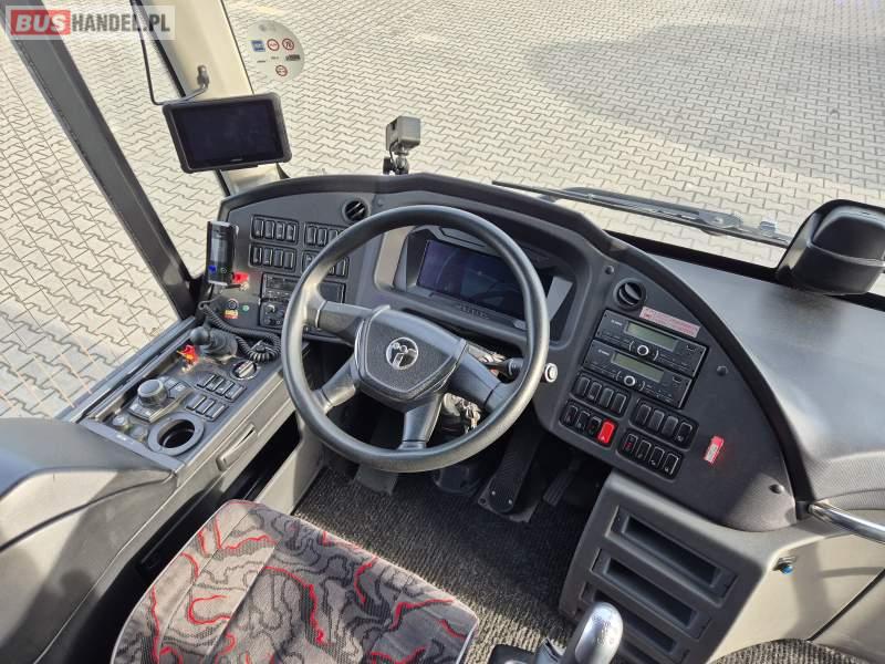 : klimatyzacja, video, WC, lodówka, kabina sypialna, oświetlenie indywidualne, fotele odchylane, podnóżki, stoliczki, siateczki, ABS, tempomat, retarder, telefon, nawigacja, CD, mikrofon, radio, rampa dla inwalidów, regulacja wysokości nadwozia, centralny zamek, podwójne szyby boczne, wspomaganie kierownicy, elektryczne lusterka, ogrzewanie stacjonarne, DVD