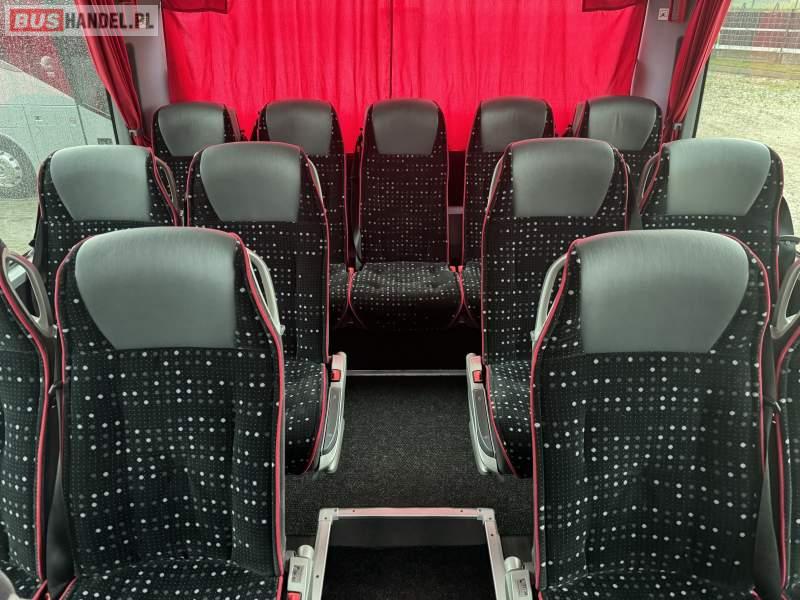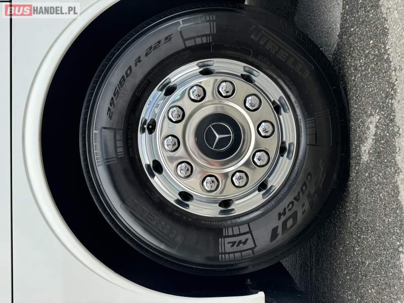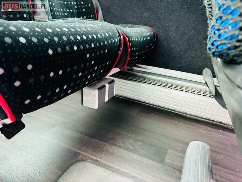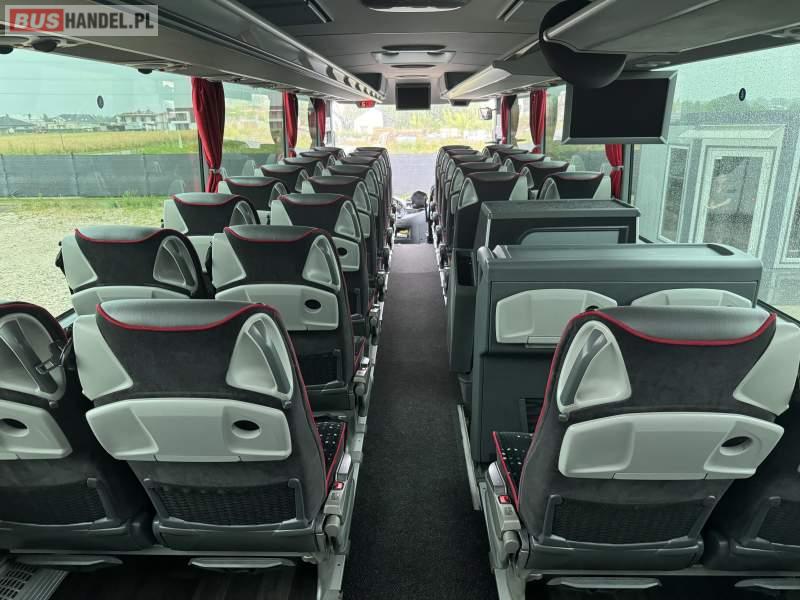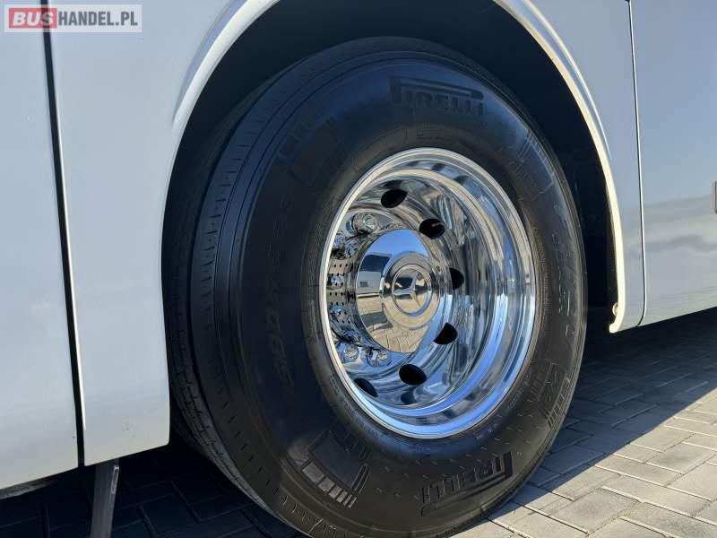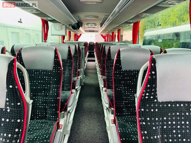 : klimatyzacja, WC, lodówka, caffebar, kabina sypialna, oświetlenie indywidualne, nawiewy dyszowe, podnóżki, stoliczki, siateczki, ABS, ASR, tempomat, retarder, telefon, CD, mikrofon, radio, fotele odchylane i rozsuwane, regulacja wysokości nadwozia, centralny zamek, podwójne szyby boczne, wspomaganie kierownicy, aluminiowe felgi, elektryczne lusterka, DVD, ESP