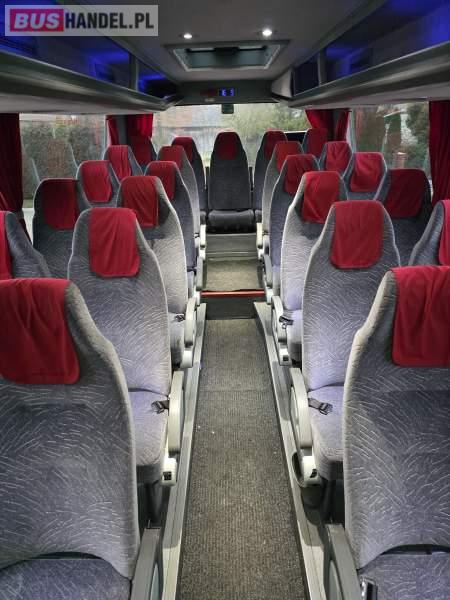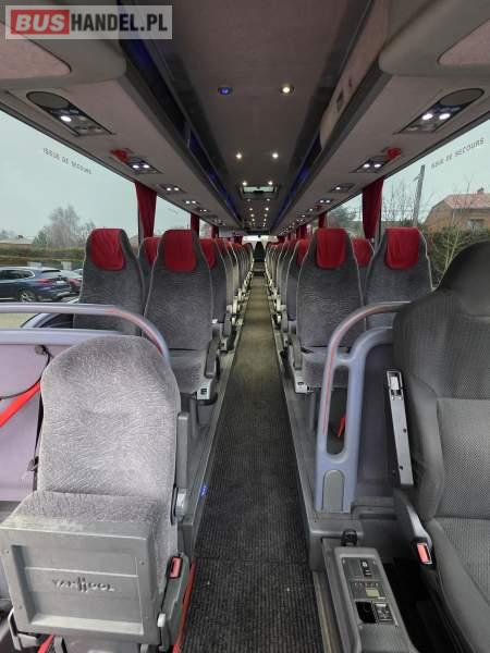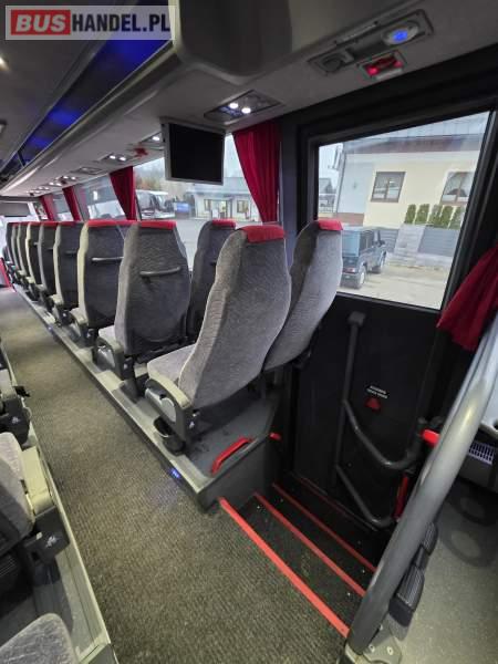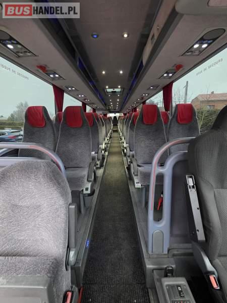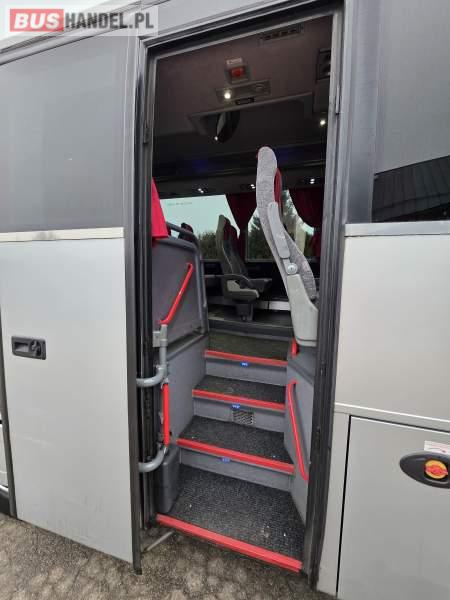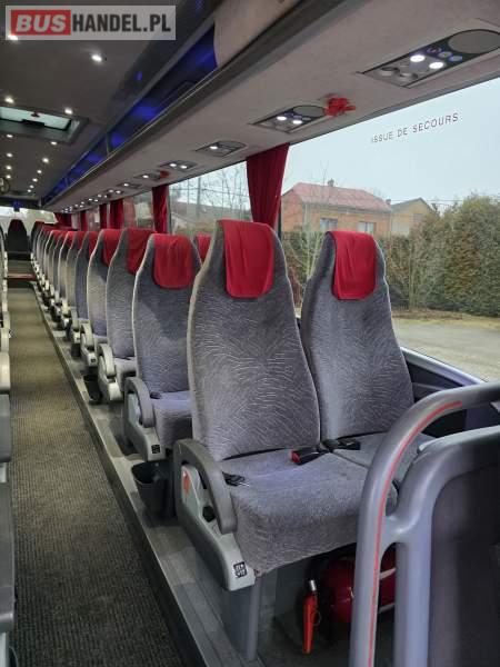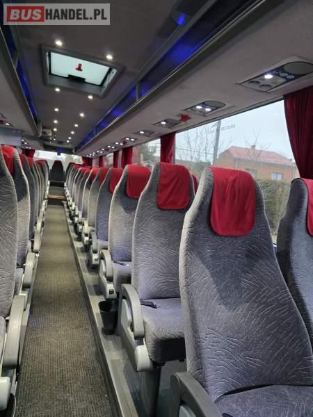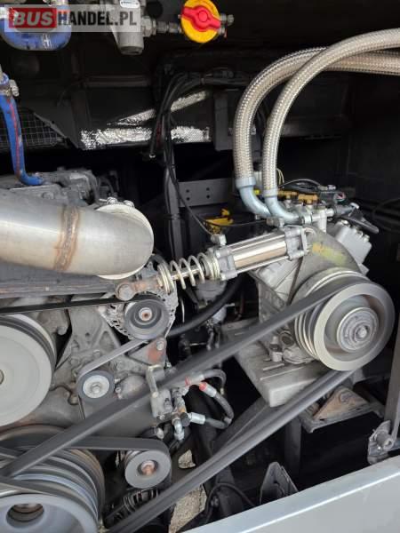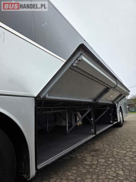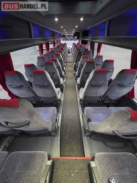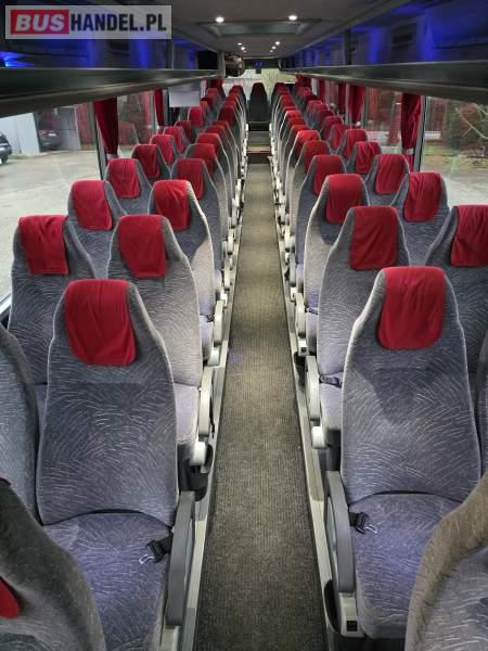 : lodówka, caffebar, fotele odchylane, oświetlenie indywidualne, nawiewy dyszowe, siateczki, ABS, ASR, tempomat, retarder, podnóżki, stoliczki, mikrofon, klimatyzacja, radio, sejf, centralny zamek, podwójne szyby boczne, wspomaganie kierownicy, elektryczne lusterka, ogrzewanie stacjonarne