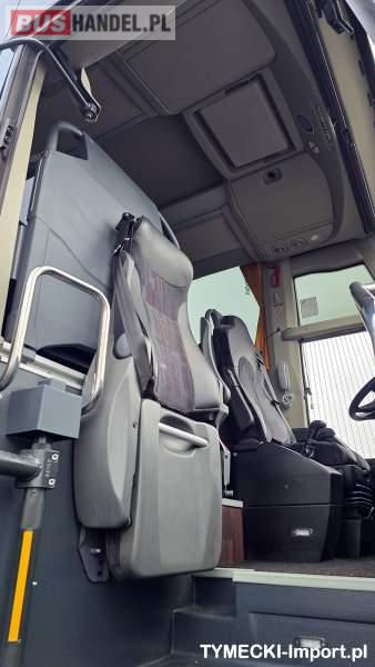 : klimatyzacja, video, lodówka, kabina sypialna, oświetlenie indywidualne, nawiewy dyszowe, fotele odchylane, podnóżki, stoliczki, siateczki, ABS, ASR, tempomat, retarder, CD, mikrofon, radio, regulacja wysokości nadwozia, centralny zamek, podwójne szyby boczne, wspomaganie kierownicy, elektryczne lusterka, ogrzewanie stacjonarne, DVD, ESP