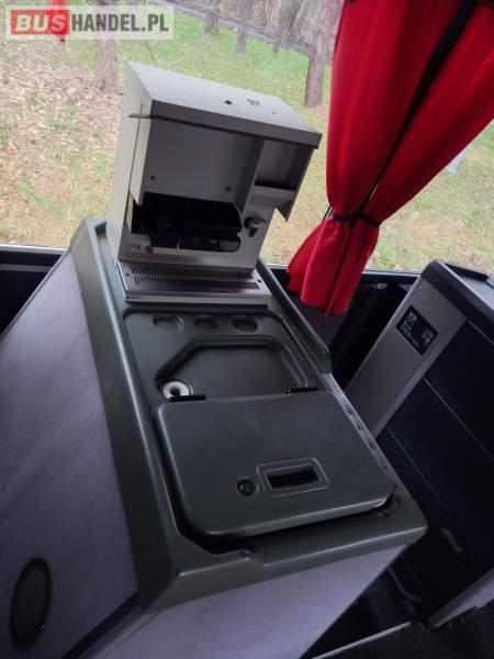 : WC, lodówka, fotele odchylane, oświetlenie indywidualne, nawiewy dyszowe, siateczki, ABS, ASR, CD, stoliczki, mikrofon, klimatyzacja, radio, regulacja wysokości nadwozia, podwójne szyby boczne, wspomaganie kierownicy, DVD, ogrzewanie stacjonarne