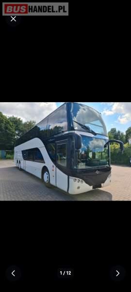 : video, WC, caffebar, kabina sypialna, fotele odchylane, oświetlenie indywidualne, siateczki, ABS, ASR, retarder, nawigacja, stoliczki, klimatyzacja, radio, regulacja wysokości nadwozia, centralny zamek, podwójne szyby boczne, wspomaganie kierownicy, elektryczne lusterka, aluminiowe felgi, DVD, ESP