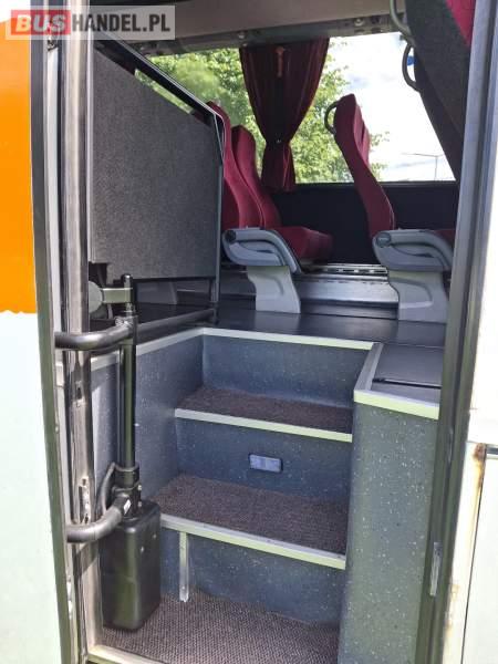 : fotele odchylane, oświetlenie indywidualne, nawiewy dyszowe, ABS, ASR, tempomat, retarder, CD, podnóżki, klimatyzacja, radio, regulacja wysokości nadwozia, podwójne szyby boczne, wspomaganie kierownicy, elektryczne lusterka, DVD, ogrzewanie stacjonarne