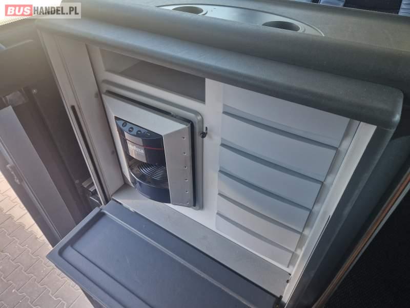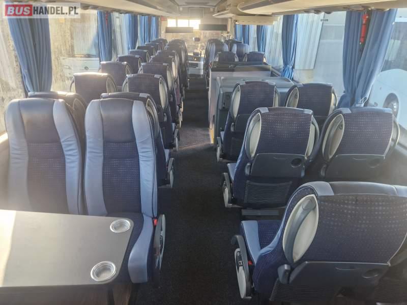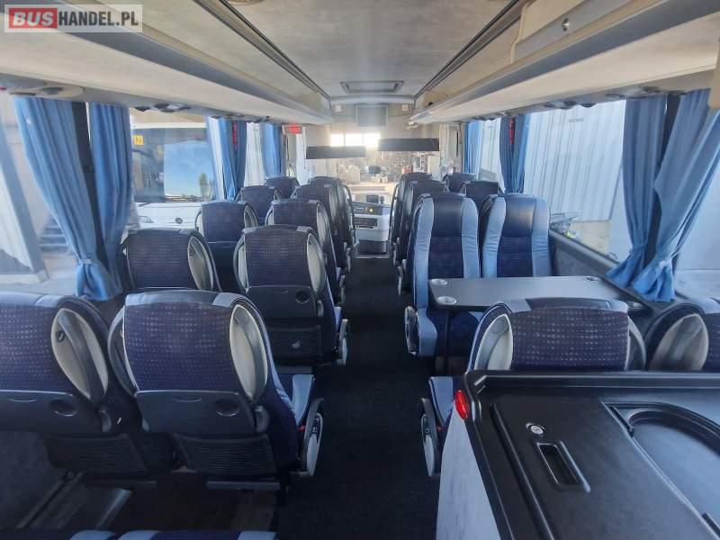 : klimatyzacja, video, WC, lodówka, caffebar, oświetlenie indywidualne, nawiewy dyszowe, fotele odchylane, podnóżki, stoliczki, siateczki, ABS, ASR, tempomat, retarder, CD, mikrofon, radio, fotele odchylane i rozsuwane, wyświetlacz matrix, regulacja wysokości nadwozia, centralny zamek, podwójne szyby boczne, wspomaganie kierownicy, elektryczne lusterka, ogrzewanie stacjonarne, DVD, ESP