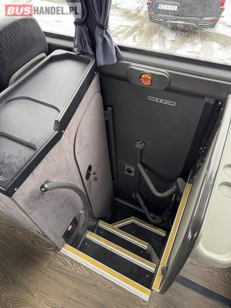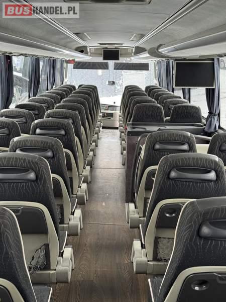 : klimatyzacja, WC, lodówka, kabina sypialna, oświetlenie indywidualne, nawiewy dyszowe, podnóżki, stoliczki, siateczki, ABS, ASR, tempomat, retarder, mikrofon, radio, fotele odchylane i rozsuwane, sejf, regulacja wysokości nadwozia, centralny zamek, podwójne szyby boczne, wspomaganie kierownicy, elektryczne lusterka, ogrzewanie stacjonarne, ESP