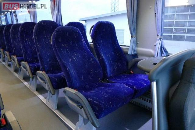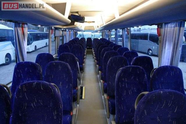 : klimatyzacja, video, lodówka, oświetlenie indywidualne, podnóżki, ABS, ASR, tempomat, retarder, nawigacja, CD, mikrofon, radio, fotele odchylane i rozsuwane, rampa dla inwalidów, regulacja wysokości nadwozia, centralny zamek, podwójne szyby boczne, wspomaganie kierownicy, elektryczne lusterka, ogrzewanie stacjonarne, DVD, ESP