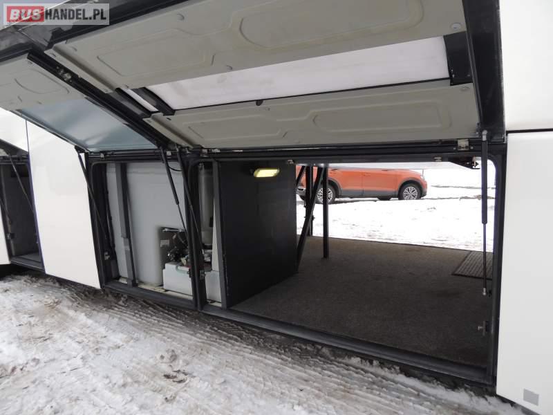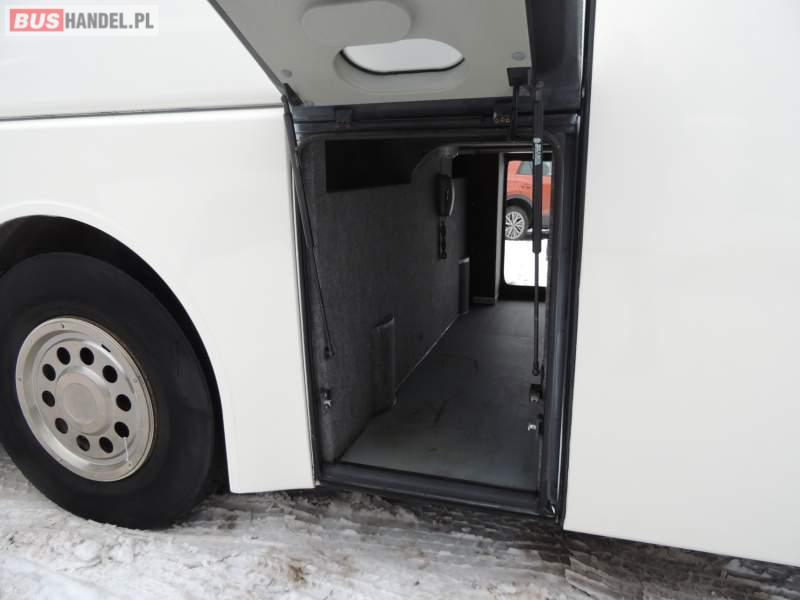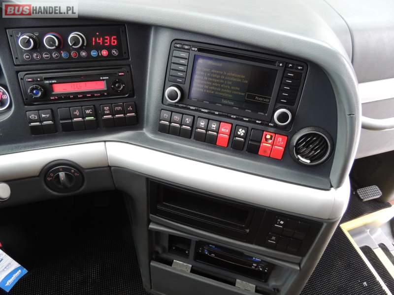 : video, WC, lodówka, caffebar, kabina sypialna, oświetlenie indywidualne, nawiewy dyszowe, siateczki, ABS, ASR, tempomat, retarder, nawigacja, CD, podnóżki, stoliczki, mikrofon, klimatyzacja, radio, sejf, regulacja wysokości nadwozia, centralny zamek, podwójne szyby boczne, wspomaganie kierownicy, elektryczne lusterka, fotele odchylane i rozsuwane, DVD, ogrzewanie stacjonarne, hak holowniczy, ESP