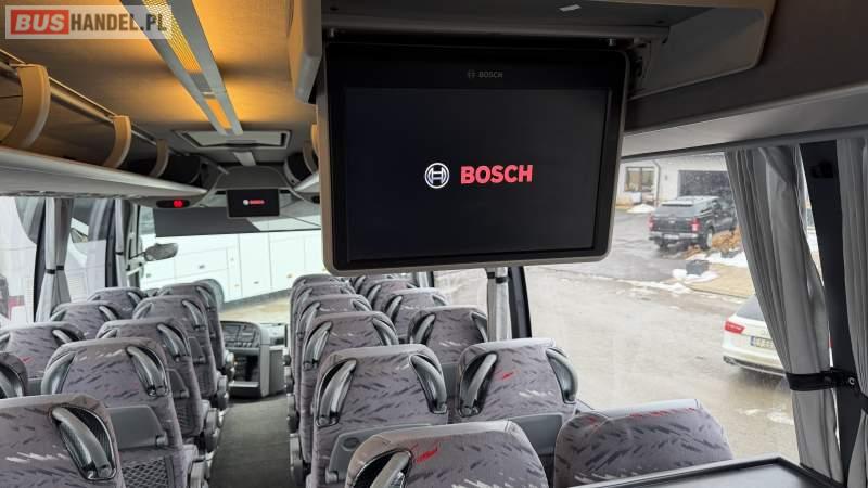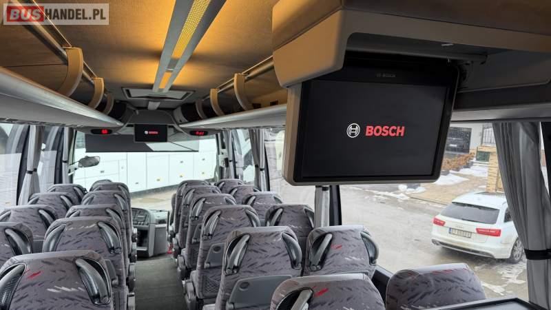 : WC, lodówka, caffebar, oświetlenie indywidualne, nawiewy dyszowe, siateczki, ABS, ASR, tempomat, retarder, podnóżki, stoliczki, mikrofon, klimatyzacja, radio, sejf, regulacja wysokości nadwozia, centralny zamek, podwójne szyby boczne, wspomaganie kierownicy, elektryczne lusterka, fotele odchylane i rozsuwane, DVD, ogrzewanie stacjonarne, ESP